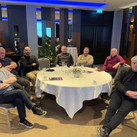 Frá vinstri: Jóna Brynja Birkisdóttir starfsmaður FS, Valgeir Ásgeirsson stýrimaður á Viðey RE, Árni Bjarnason fyrrverandi formaður Félags skipstjórnarmanna frá 2004 til 2022. Guðjón Guðjónsson skipstóri á Arnari HU frá Skagaströnd, stjórnarmaður í FS, Axel Jóhannsson fyrrverandi skipstjóri á Gullver frá Seyðisfirði og Birgir Sigurjónsson fyrrverandi skipstjóri á togaranum Bjarti frá Neskaupsstað